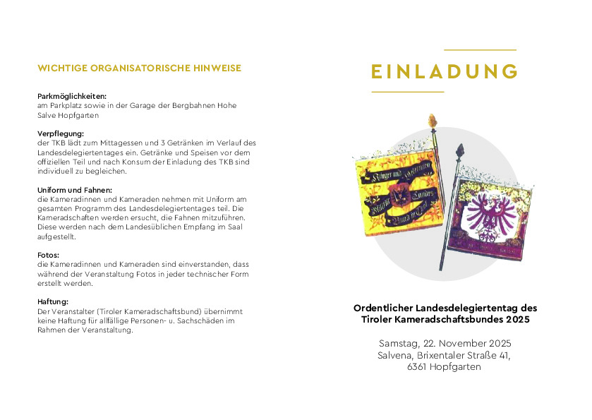 Einladung Ordentlicher Landesdelegiertentag des Tiroler Kameradschaftsbundes 2025