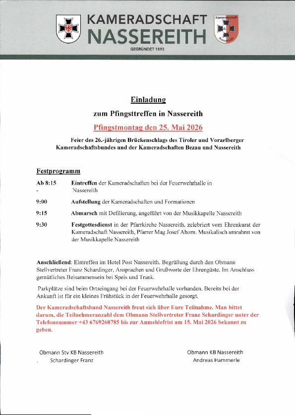 Mit Dank und kameradschaftlichen Grüßen,