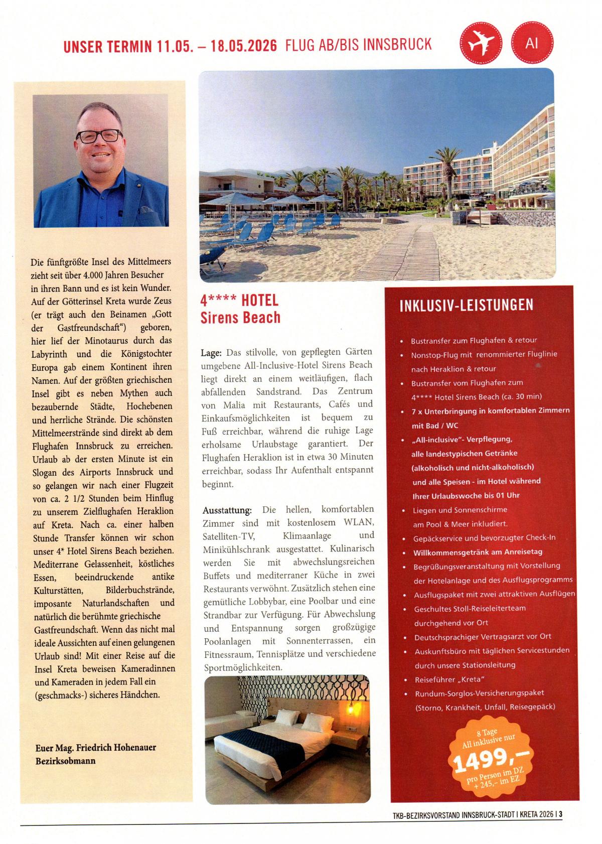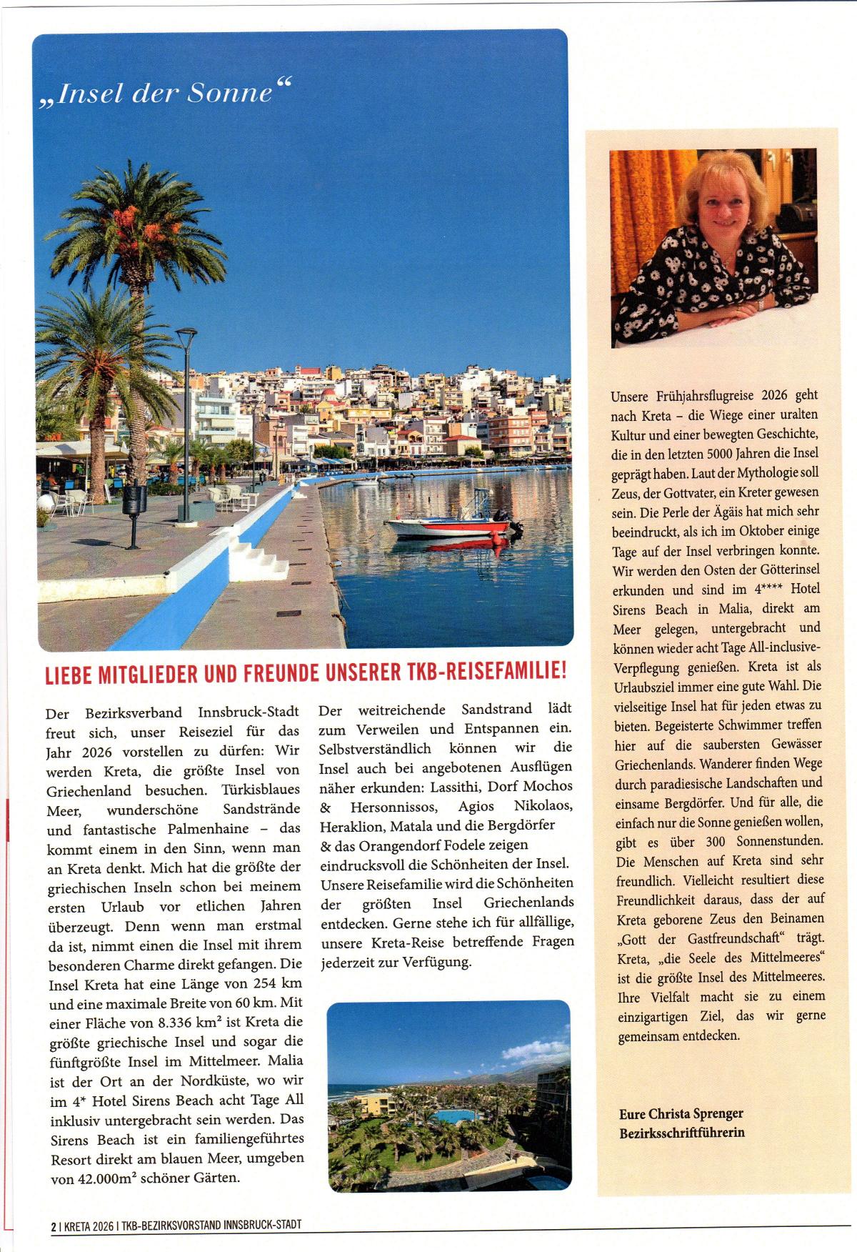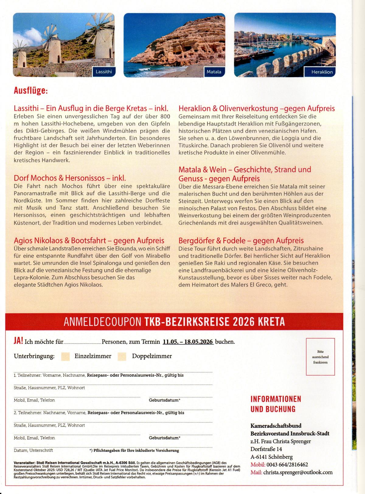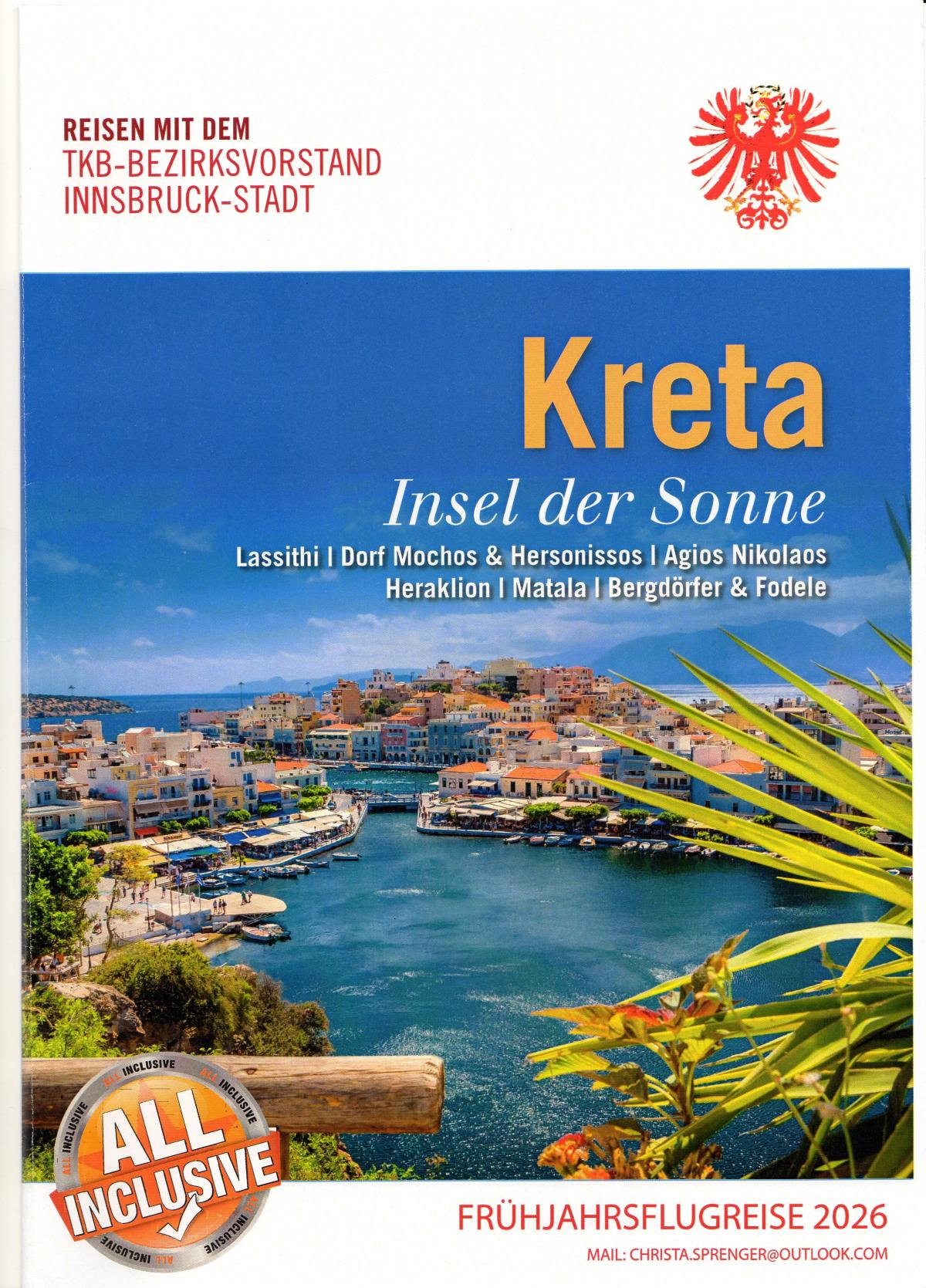 Einladung und Anmeldung Frühjahrsflugreise des Bezirksverbandes Innsbruck-Stadt nach Kreta 2026