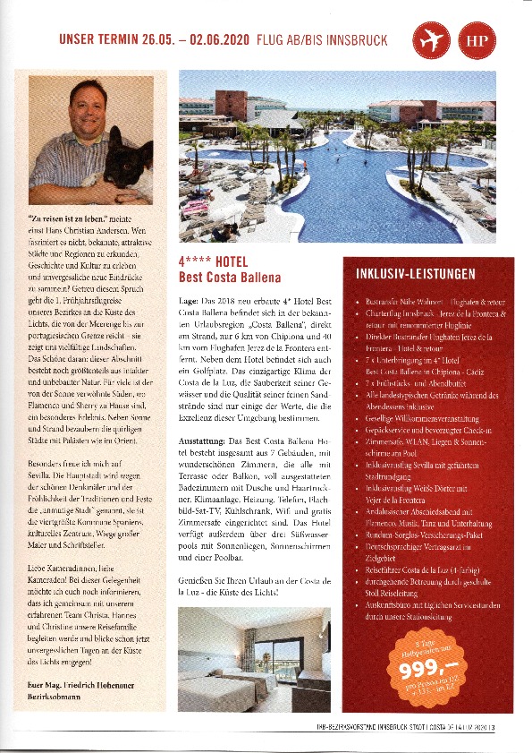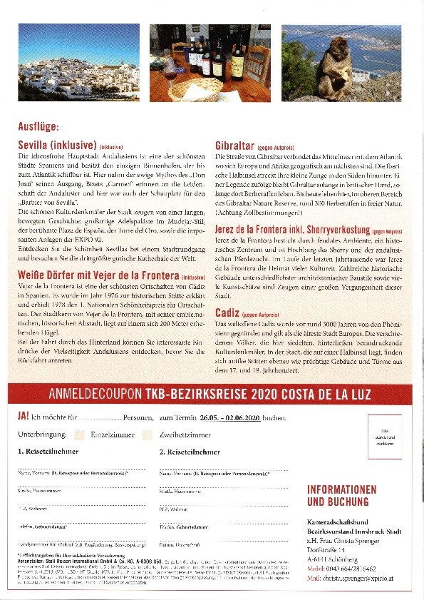 1. Frühjahrsreise des Bezirksvorstandes Innsbruck-Stadt an die Costa de la Luz