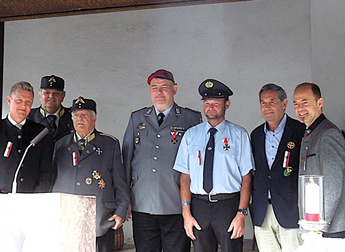 Zwei bayerische Kameraden erhielten in Anerkennung ihrer Verdienste um den Tiroler Kameradschaftsbund das Verdienstkreuz in Gold an die Brust geheftet. Der Präsident des Tiroler Kaiserjäger-Clubs, Oberst i. R. Manfred Schullern-Schrattenhofen wurde vom neuen Landesgeschäftsführer des Schwarzen Kreuzes Tirol, Hofrat Thomas Huter, mit dem Großen Ehrenzeichen in Gold des Österreichischen Schwarzen Kreuzes ausgezeichnet.