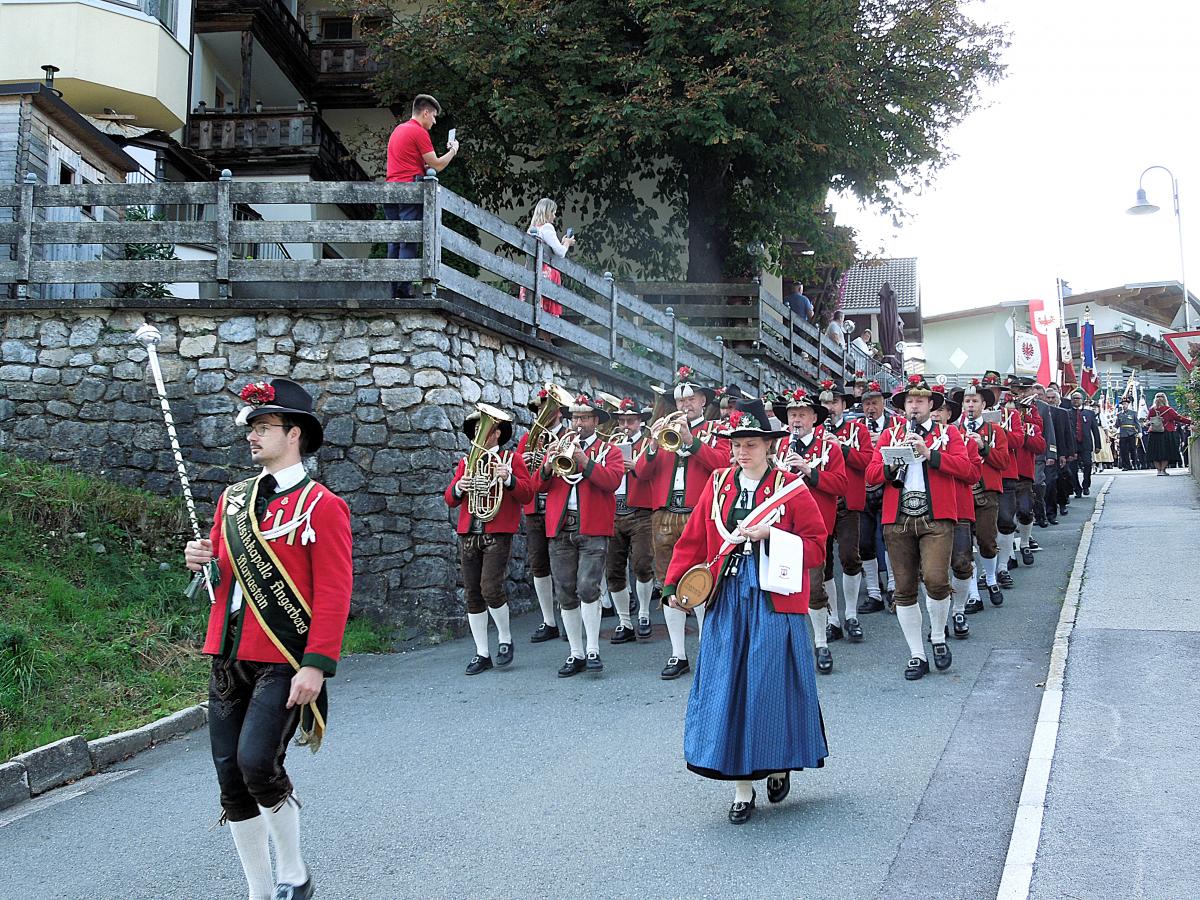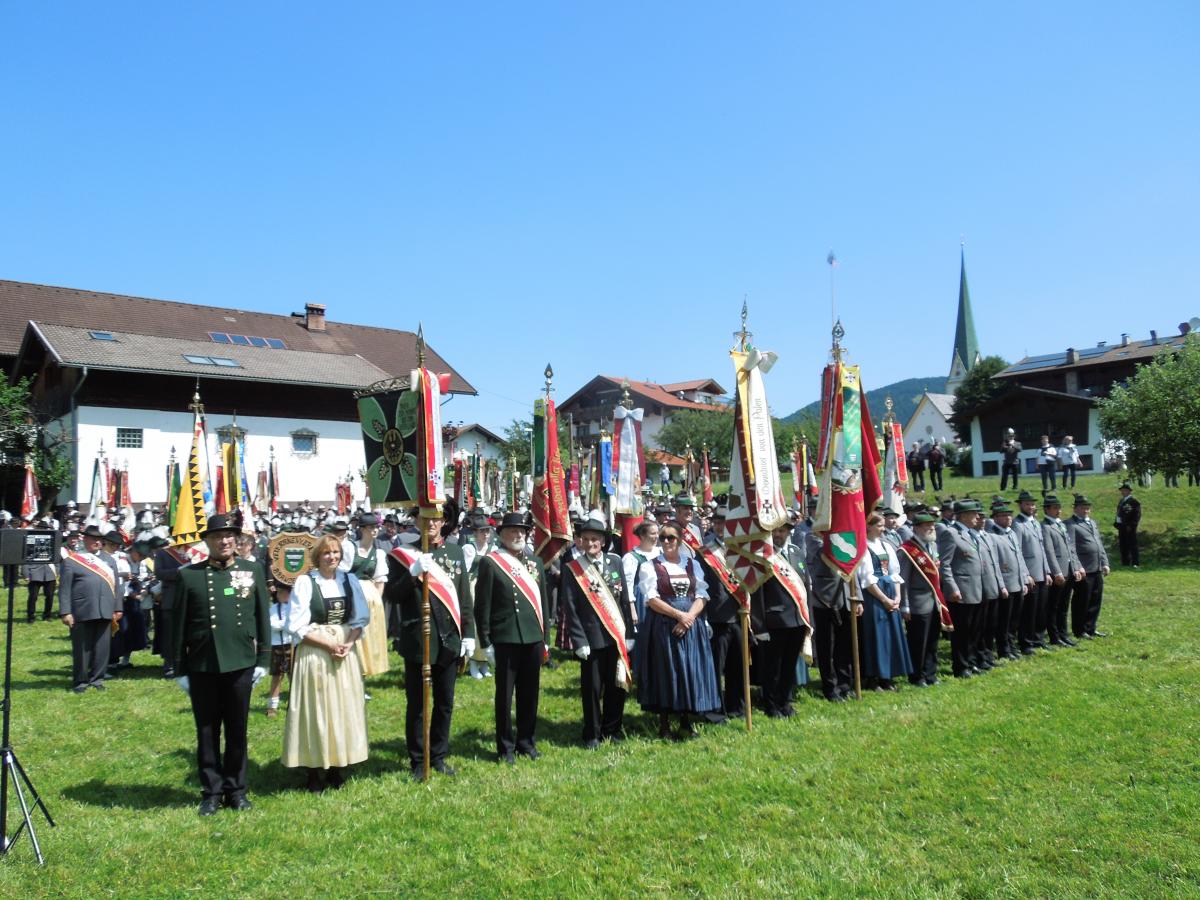Die Zahl der teilnehmenden Vereine unter Hinzuziehung der Landesstandarten aus Vorarlberg und Tirol war enorm. Das Abschreiten der Formationen, der Aufmarsch durch den Ort, die Feldmesse mit Überreichung der Fahnenbänder beim "Melcherhof" und die Defilierung ergaben ein besonders festliches Bild. Als Ehrenformationen fungierten die Bundesmusikkapelle Brandenberg und die Schützenkompanie Brandenberg.