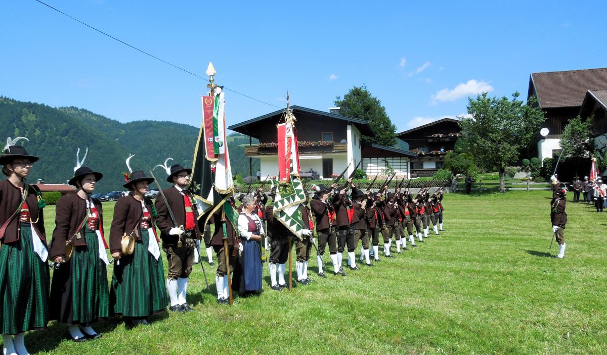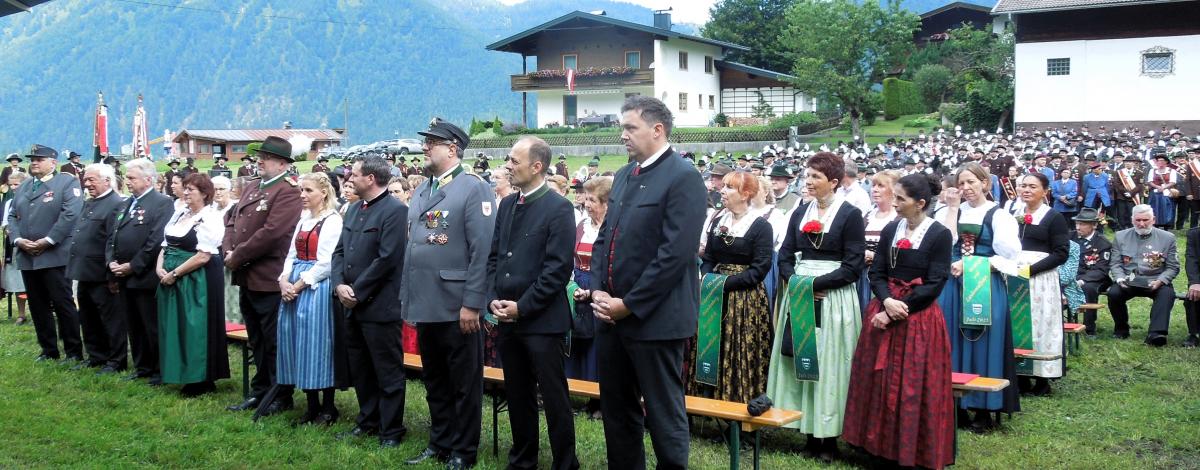 Als Ehrenformationen wirkten die Bundesmusikkapelle Mariastein-Angerberg, die Landesstandarte des TKB und die Ehrenkompanie des Veteranenvereins Brandenberg mit.
