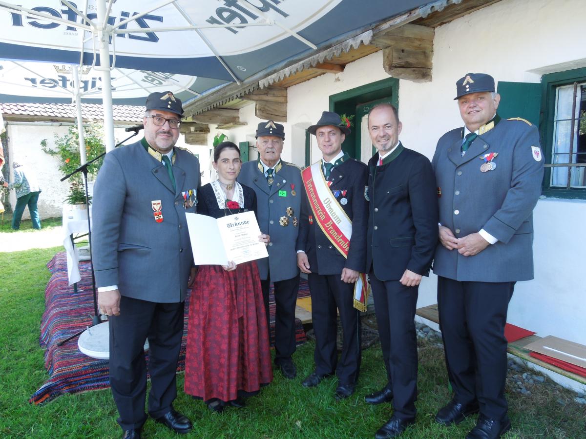 Brandenberg ist bekannt für seine große Zahl an Fahnenbandspenderinnen. Ihr Eintreten für den Fortbestand Tiroler Tradition wurde besonders bedankt.