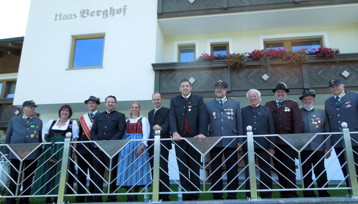 TKB-Präsident Franz Xaver Gruber, TKB-Ehrenpräsident Bezirksobmann Hermann Hotter und TKB-Vizepräsident Roman Burgstaller sowie Nationalrat LLK-Präsident Josef Hechenberger zeichneten die Kameraden BGM Hannes Burgstaller, Martin Ampferer, Obmann Sebastian Kofler mit der TKB-Verdienstmedaille in Gold aus. Kameradin Heidi Ascher bekam für ihr Engagement für den Tiroler Kameradschaftsbund die große Ehrenbrosche in Silber überreicht.