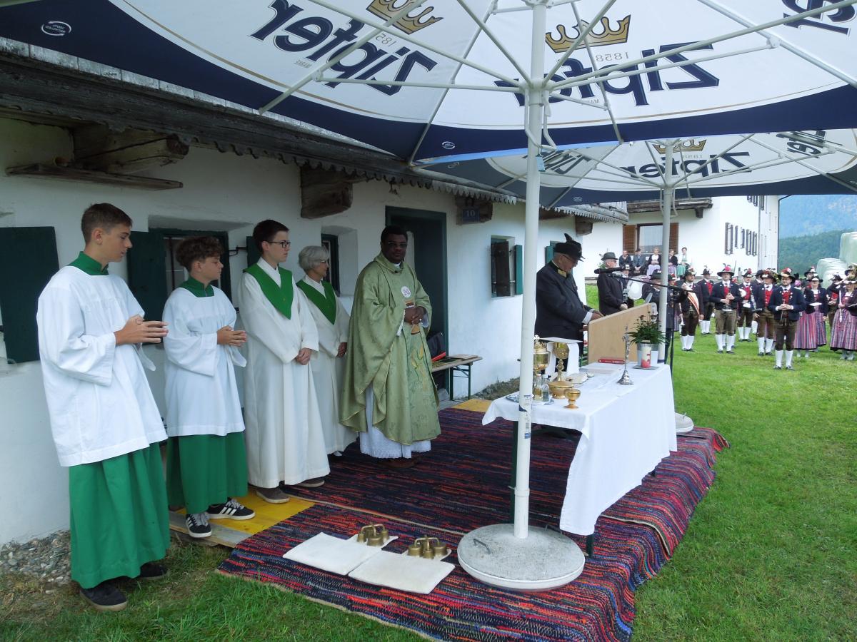 Die Feldmesse, zelebriert von Pater Benvenue Kotjo fand im Gedenken an die Kriegsopfer und die verstorbenen Kameradinnen und Kameraden beim "Melcherhof" statt.