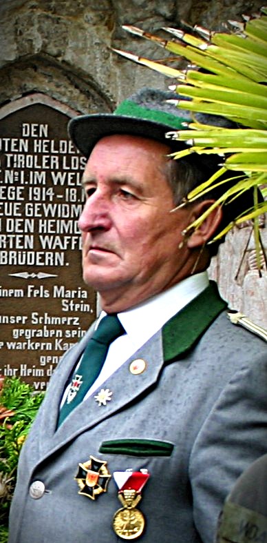 Der Präsident der bayerischen Kameradschafts- und Soldatenvereinigung Hans Schiener (80.000 Mitglieder) unterstrich mit dem Verbandsspruch "In Treue fest" das Gedenken an die Toten und Vermissten der Weltkriege und brachte mit seinem Kommen die Freundschaft zwischen den Tiroler und Bayerischen Kameraden zum Ausdruck, die bereits über 35 Jahre währt.
