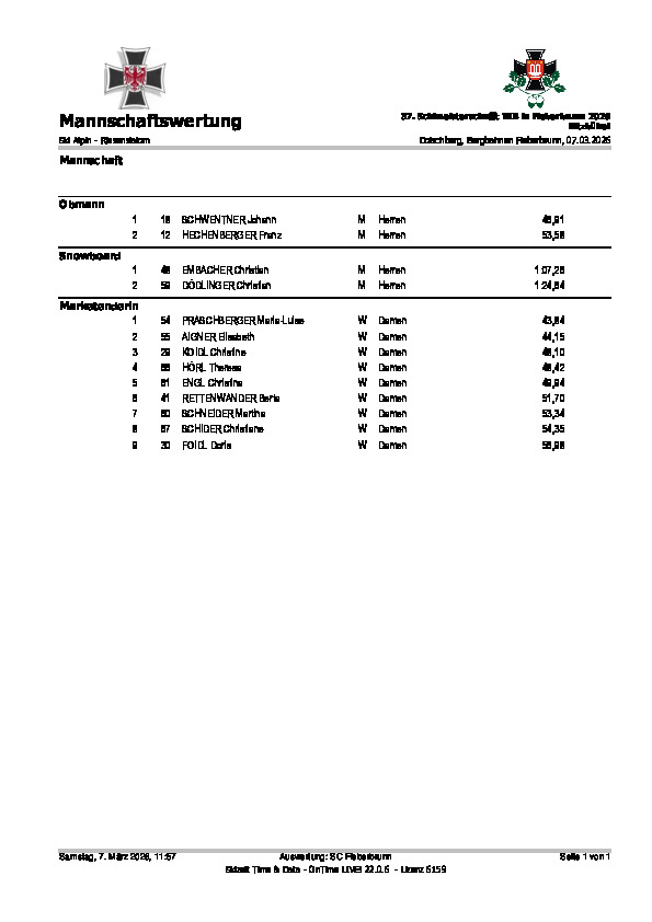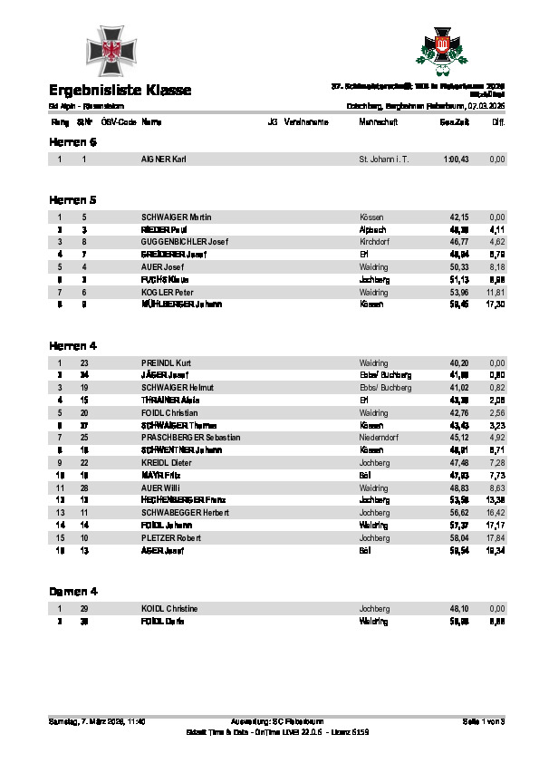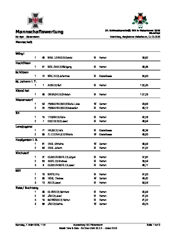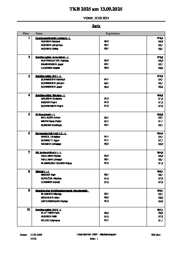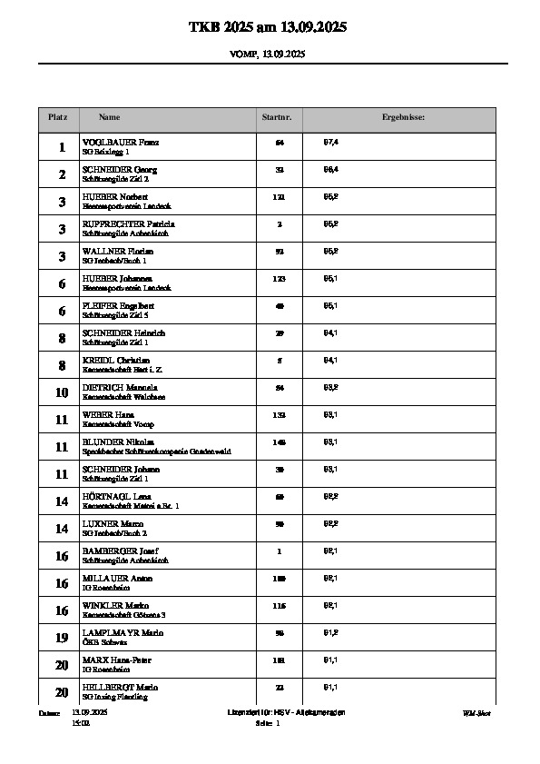 Ergebnislisten Landesschießen und Schimeisterschaft