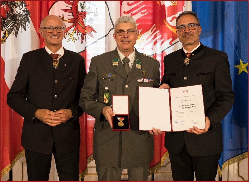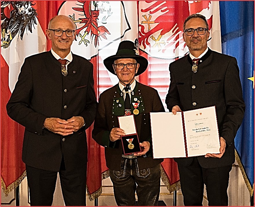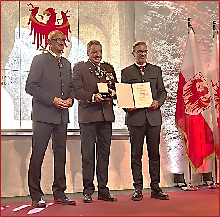 LH Anton Mattle und LH Arno Kompatscher nehmen unseren Kameraden Andreas Hauser in ihre Mitte.