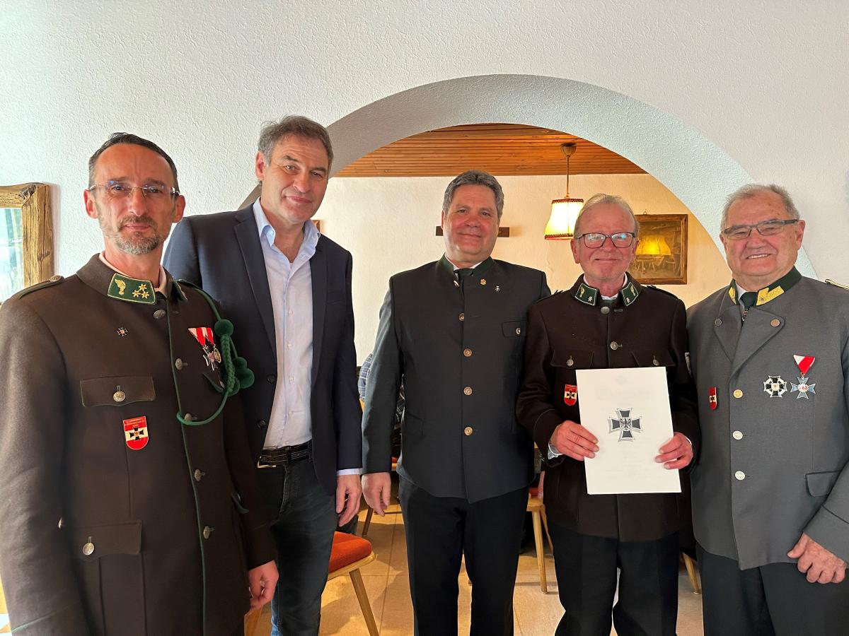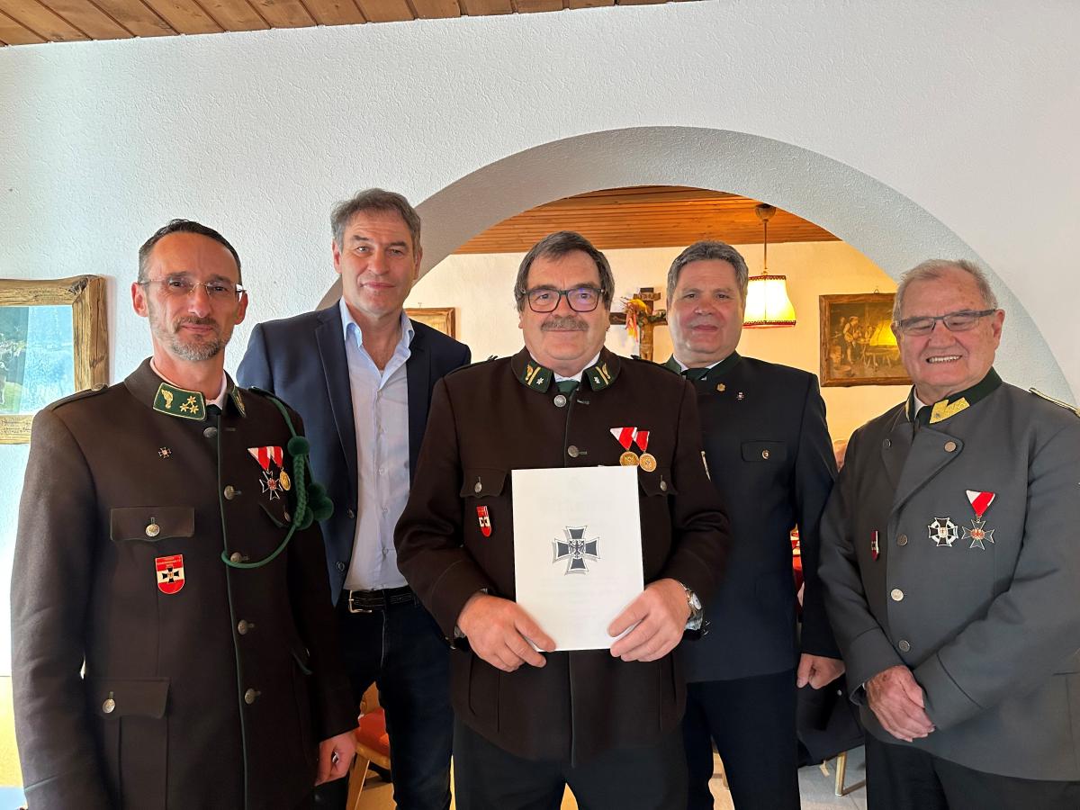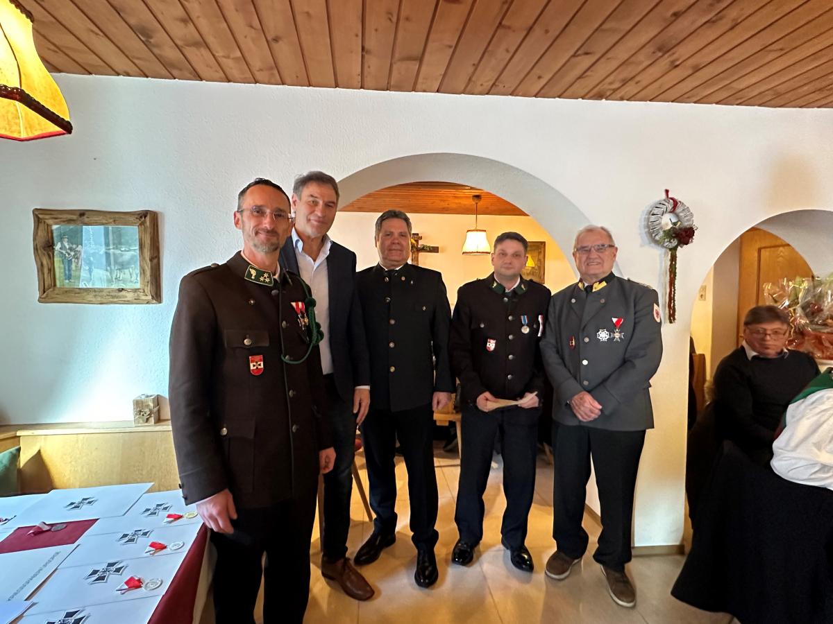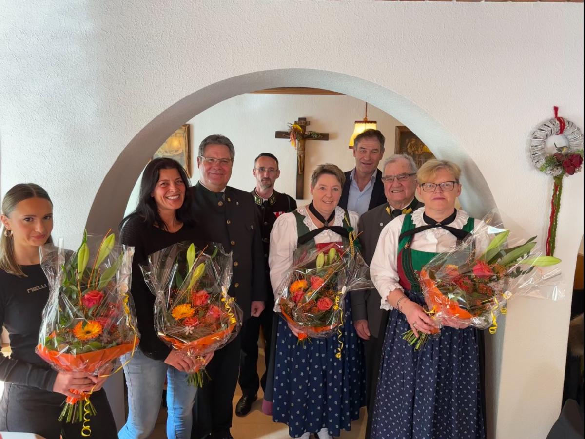 Jahreshauptversammlung 2021 Gasthaus Naviser Hof mit Bgm. Alexaner Woerz, Vize. Bgm. Erich Nagele, Vize. Bgm. Christian Papes, Präsident Franz Xaver Gruber, BZ-Obm. Ulrich Apperle