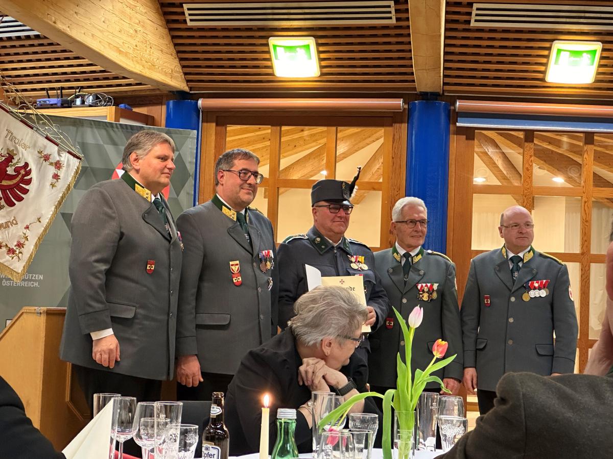 Jahreshauptversammlung 2024 Gasthaus zur Brücke Matrei a. Br mit Vize Bgm. Hans-Peter Hörtnagl, BZ-Ehrenobmann Peter Mayr, BZ-Obm. Ulrich Apperle