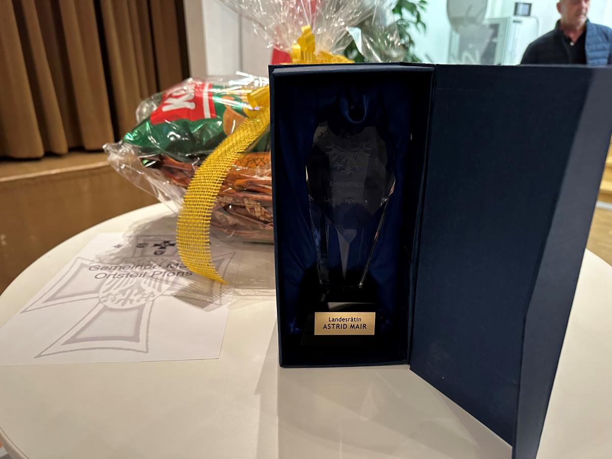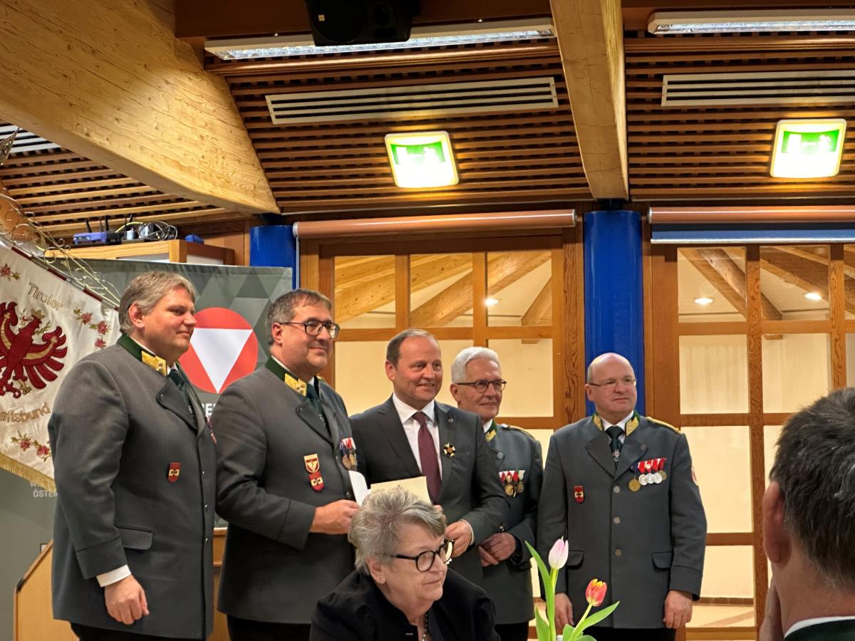 Landesüblicher Empfang, Wappenweihe, aus drei Gemeinden mach eine mit LH Anton Mattle, LAbg. Bgm. Florian Riedl, LAbg. a.d. Lisa Jenewein, Bgm. Patrick Geir, GR Paul Obertanner