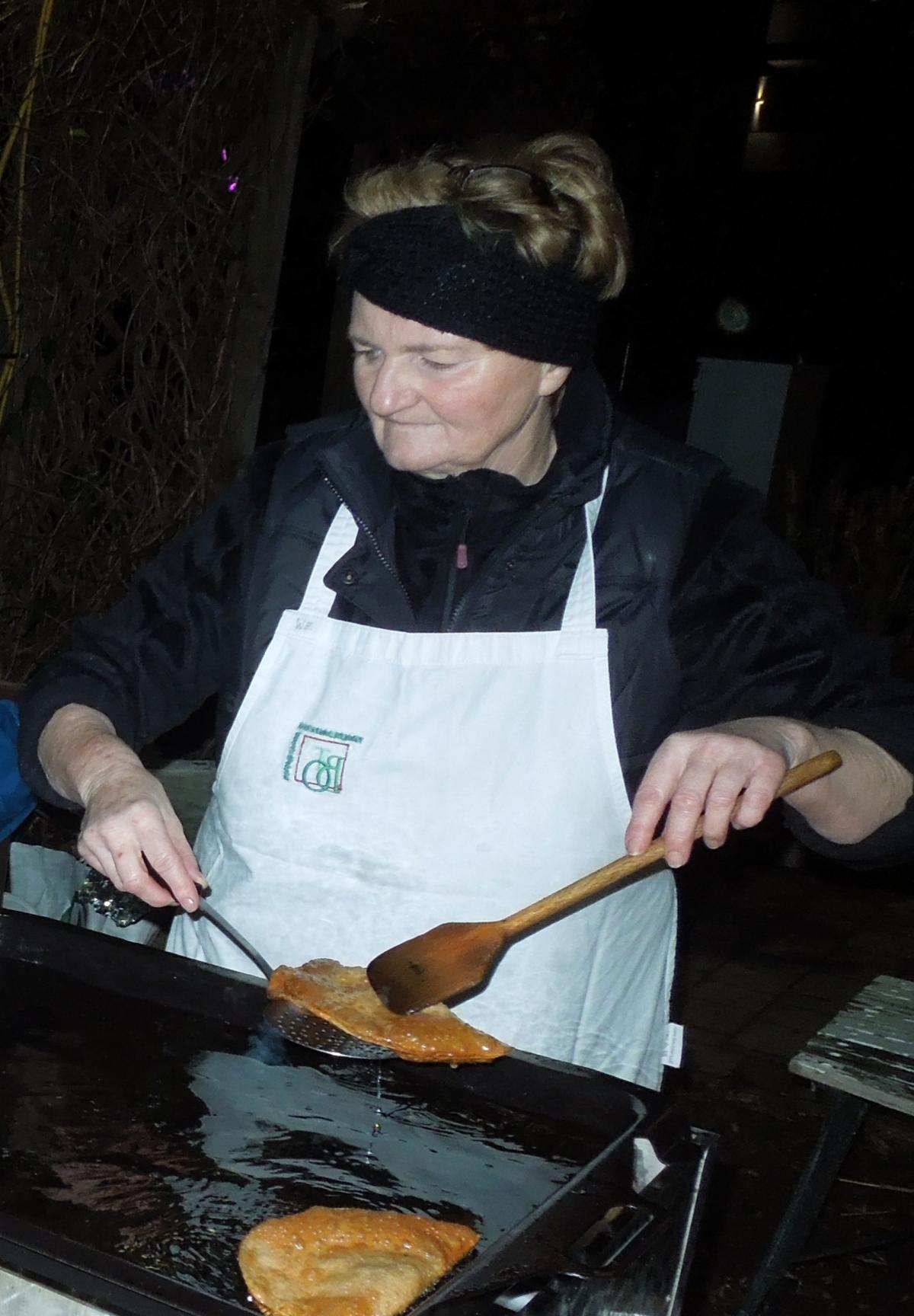 Der Zillertaler Krapfen - Stand, den die Bäuerinnen heuer für den Kameradschaftsbund dankenswerter Weise betrieben, erfreute sich eines überaus großen Zuspruchs. Im Bild Wallerbäuerin Rosi Werlberger, Gattin des Wörgler Kameradschaftsbundobmannes Josef Werlberger, beim Herausbacken der Köstlichkeit.