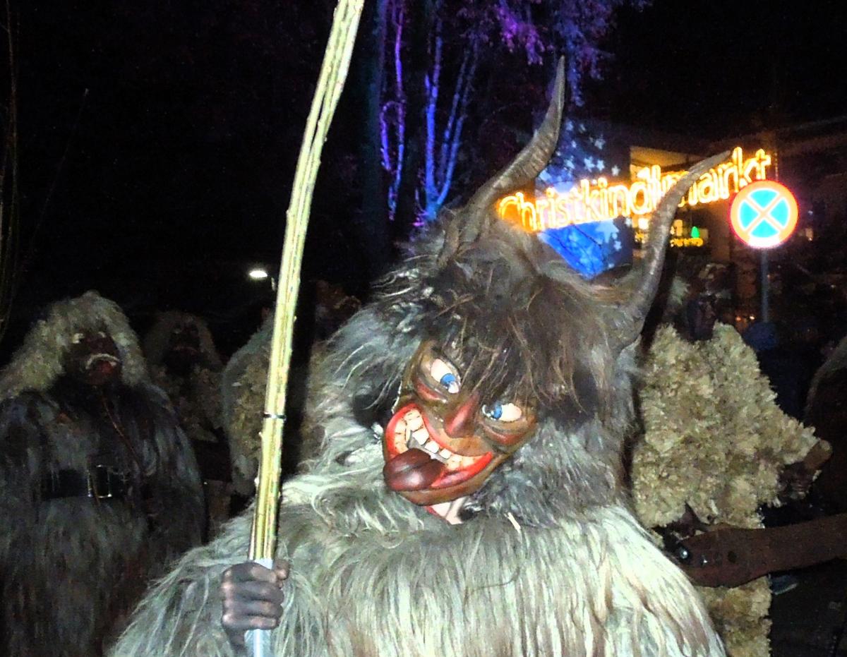 Schaurige Gesellen hielten mit dem Nikolaus Einzug in den Park des Seniorenheims. Vorher gings durch die Bahnhofstrasse (im Bild das Palais Stawa).
