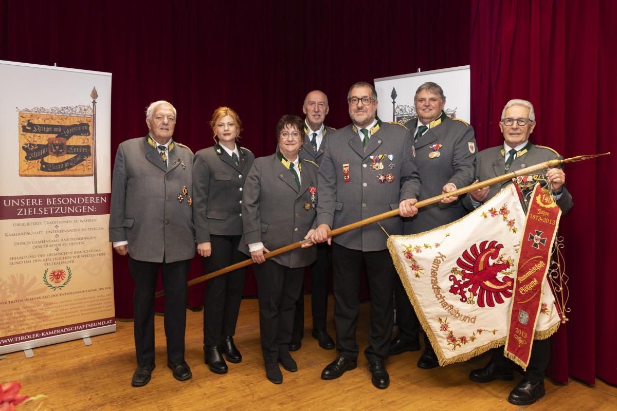 Vom Tiroler Kameradschaftsbund ausgezeichnet wurden: Mit der Verdienstmedaille in Silber Herbert Tipotsch, mit der Verdienstmedaille in Gold Franz Kröll, Sebastian Schwarzenbacher und Josef Hofer. Bürgermeisterin Hedi Wechner wurde als Dankeschön für die jahrelange gute Zusammenarbeit das Verdienstkreuz in Silber überreicht.